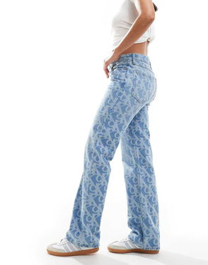 Jeans Signature 90s All Over Print Jeans In Mid Blue