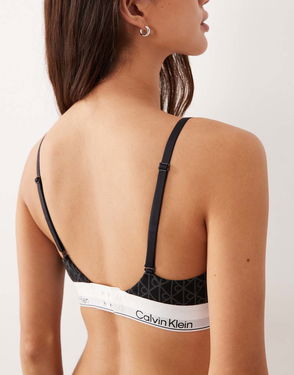 Icon Cotton Modal Lightly Lined Triangle Bra In Grey Emblem Print