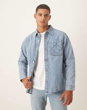 Jeans 90s Denim Overshirt With Logo Pocket Details In Stone Wash
