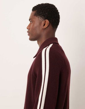 Jeans Stripe Knit Track Jacket In Burgundy And White