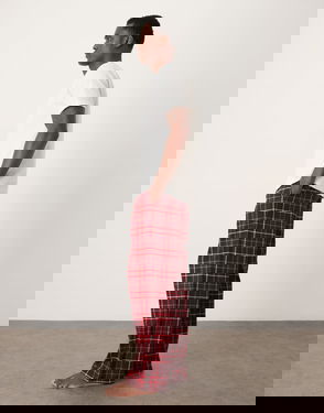 Cotton Windowpane Print Pyjama Bottoms In Deep Red