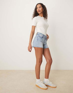Jeans Signature 90s Distressed Denim Shorts In Light Blue