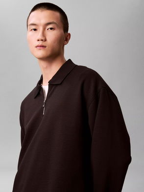 Cotton Blend Crinkle Crepe Quarter-Zip Sweatshirt, Black