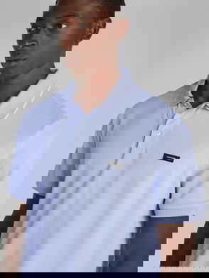 Cotton Regular Fit Short Sleeve Zip Neck Polo Shirt, Zen Blue