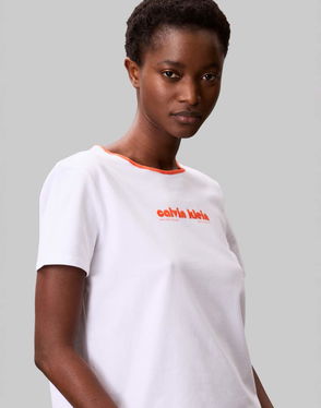 Jeans Short Sleeve Off Shoulder Logo T-shirt In White