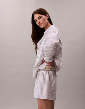 Cotton Poplin Pyjama Shorts In White And Grey Stripe