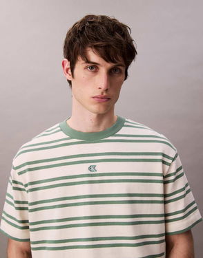Jeans Oversized Stripe T-shirt In Off White And Green