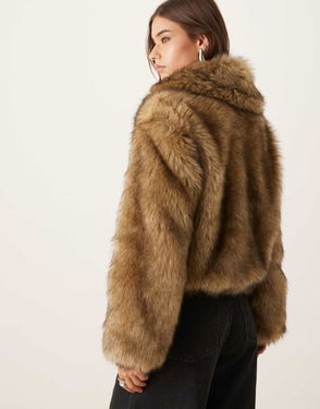 Abercrombie & Fitch Short Zip Front Faux Fur Jacket In Brown