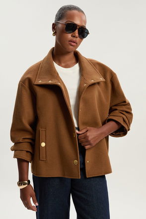 Plus Size Brushed Wool Funnel Neck Tailored Short Coat