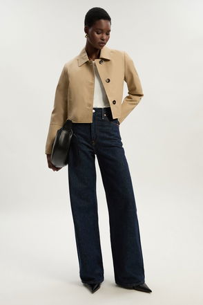 Nelly Leather Blend Long Sleeve Collar Jacket