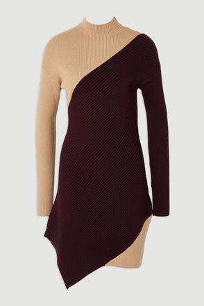 Soft Ribbed Asymmetric Hem Knitted Dress