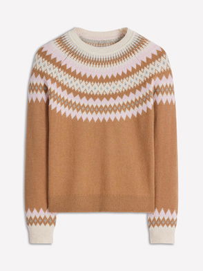 Camel Greta Wool Blend Fairisle Crew Neck Knitted Jumper