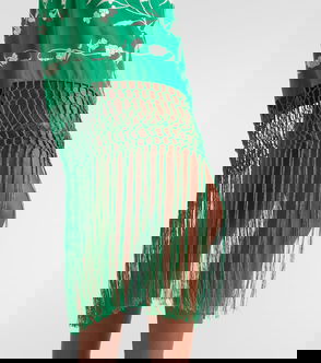 Embellished Embroidered Fringed Silk Minidress