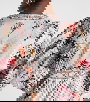 Floral-appliqué Gathered Silk Crêpe Minidress