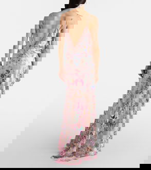 Embellished Floral Silk Maxi Dress