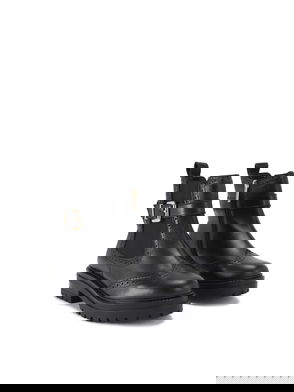 Silver2 Buckle Leather Ankle Boots, Black