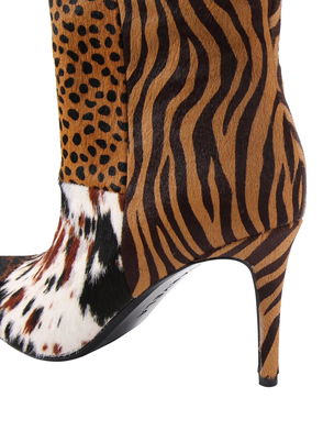 Amore Calf Hair Leather Knee High Boots, Brown/Multi