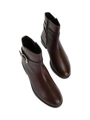 Strap Buckle Leather Ankle Boots