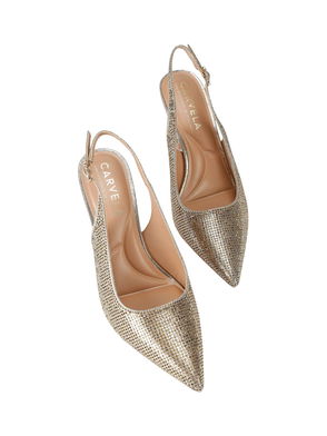 Corletta Crystal Embellished Sling Back Heel Court Shoes, Gold