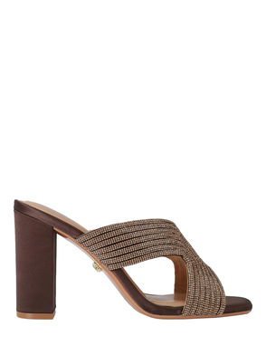 Paparazzi Crystal Embellished Block Heel Sandals, Brown