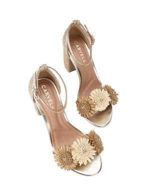 Sorrento Flower Block Heel Sandals, Gold
