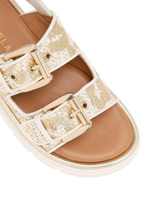 Pavilion Slingback Double Buckle Sandals, Gold