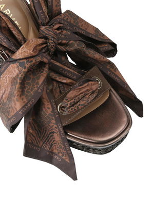 Sorrento Scarf Wedge Sandals, Brown Mid