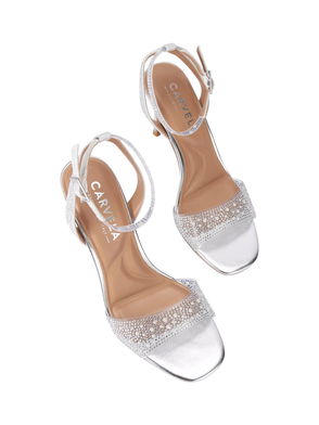 Sadie Jewel Embellished Heeled Sandals, Silver