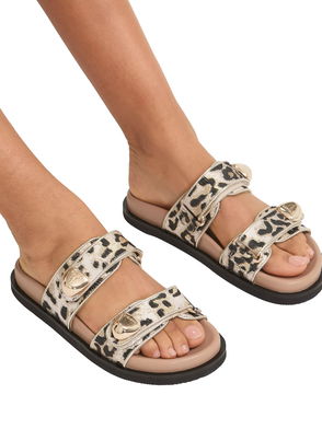Sorano Leopard Print Double Strap Sandals, Gold