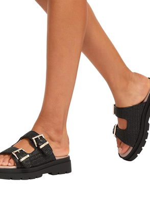 Bormio Buckle Sandals, Black