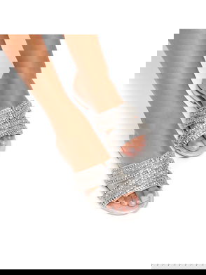 Gala Crystal Embellished Block Heeled Mules, Silver