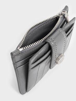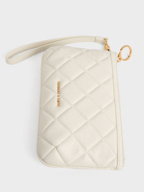 Arrietty Quilted Bow-Heart Charm Curved-Flap Wallet