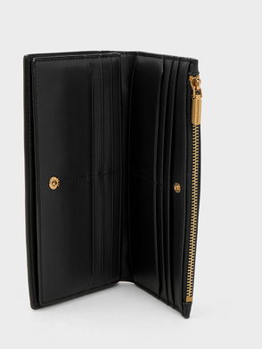 Arrietty Quilted Bow-Heart Charm Zip-Around Wallet