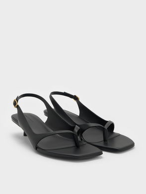 Rayne Square-Toe Kitten-Heel Thong Slingback Sandals