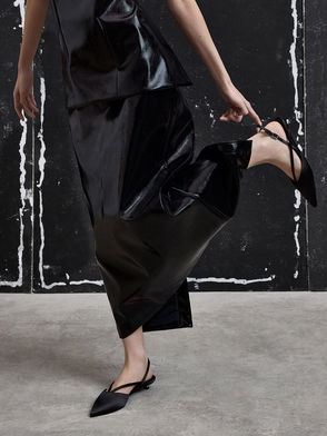 Patent Chain-Strap Mules