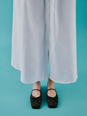 Mesh Bow Square-Toe Ballet Mules