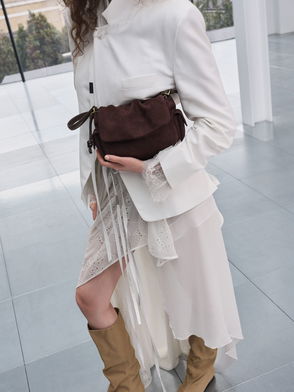 Mila Recycled Suede Metallic-Knot Drawstring Tote Bag