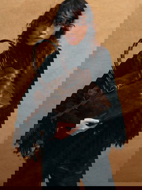 Khai Recycled Suede Ruched-Flap Side-Pocket Top Handle Bag