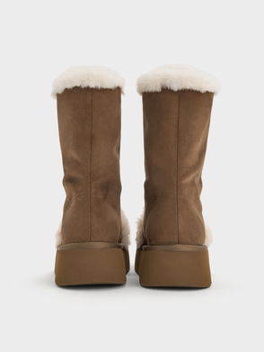 Faux Suede & Faux Fur Foldover Flatform Boots