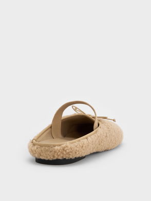Nancy Faux Shearling Bow Ballet Mules