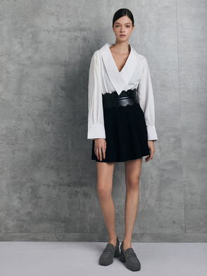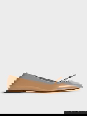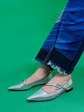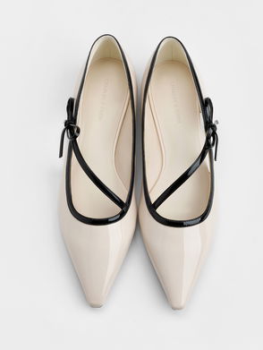 Patent Contrast-Trim Pointed-Toe Bow-Strap Flats