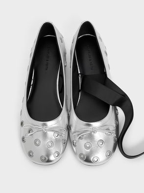 Margot Metallic Grommet Tie-Around Ballet Flats