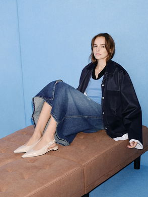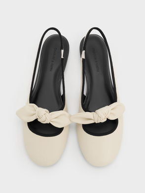 Jayce Leather Crinkle-Effect Knot-Bow Slingback Flats