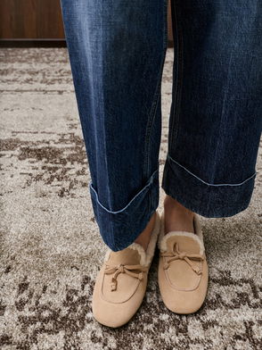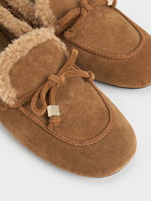 Faux Suede Metallic-Accent Square-Toe Slingback Flats