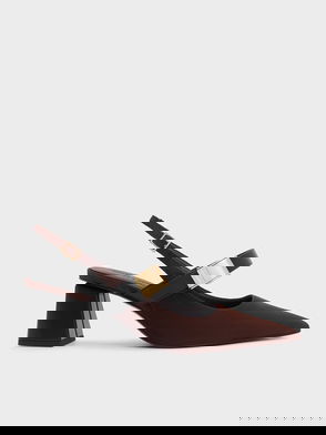 Helena Pearl-Buckle Pointed-Toe Slingback Pumps