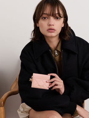 Arrietty Quilted Bow-Heart Charm Belted Card Holder