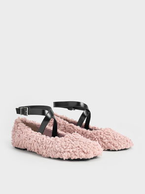 Lumi Faux Shearling Crossover-Strap Slide Sandals