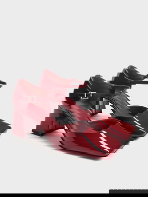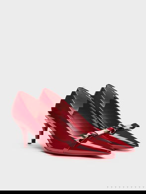 Wynn Patent Buckled Sculptural-Heel Slingback Pumps