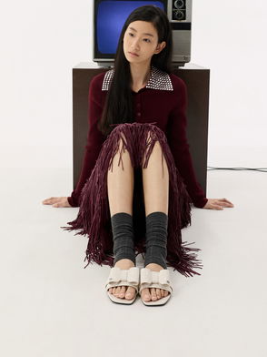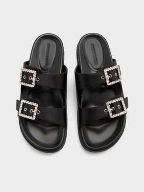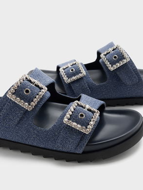 Recycled Polyester Gem-Buckle Double-Strap Sandals
