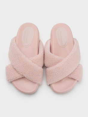 Lumi Faux Shearling Crossover-Strap Slide Sandals
